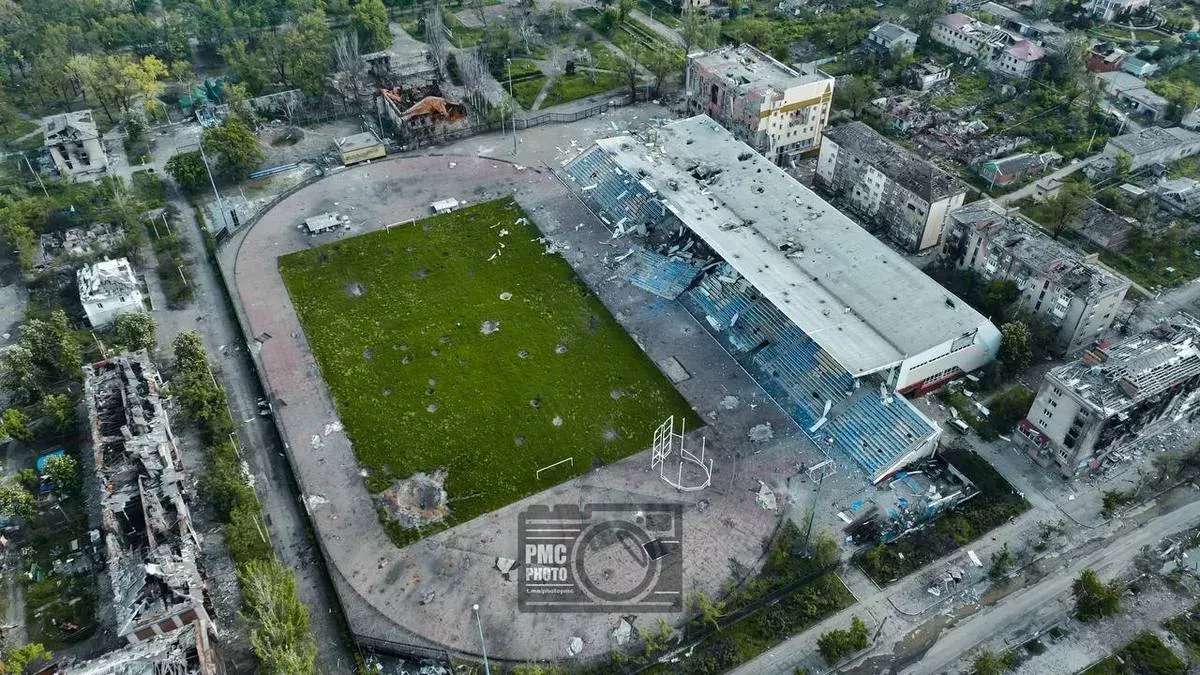 Показательный пример — Донецк. Центральный стадион “Шахтер”, одна из ключевых арен города, сегодня без всяких обстрелов находится в заброшенном состоянии. Трибуны разрушены, поле запущено, территория деградирует — при том, что объект никогда не фигурировал в военных сводках…