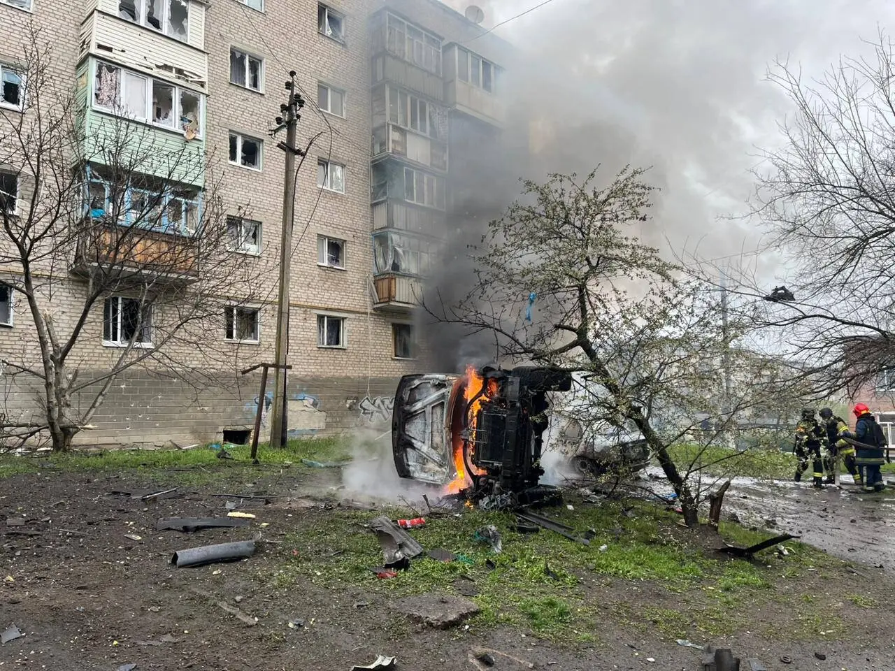 На местах ударов работают спасатели, правоохранители и медики. Продолжается обследование поврежденных зданий, информация о последствиях уточняется.