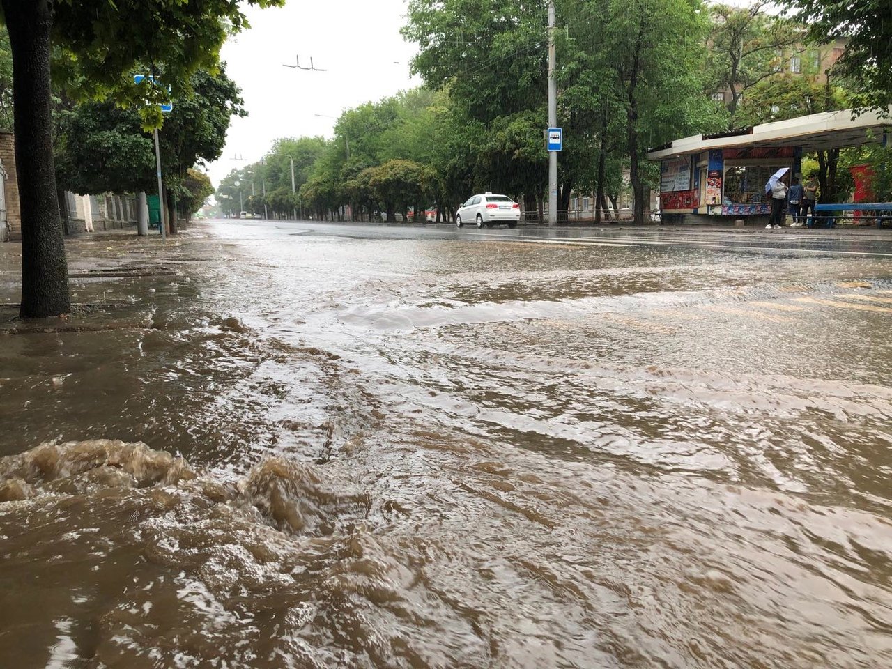 Как заявил глава горадминстрации Донецка от “ДНР” Алексей Кулемзин, “временно приостановлено движение трамваев по маршрутам №№ 16,8 по причине скопления дождевой воды выше нормы на ул. Кронштадской”.
