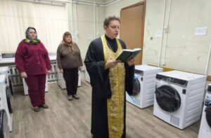 Согласно опубликованной в соцсетях информации, неназванные “специалисты” обустроили место, которое стало “благотворительной прачечной”. Вода здесь есть только потому, что емкость для нее предоставили священники, как подчеркивается, безвозмездно!