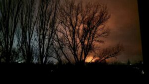 Жители фиксировали серию взрывов, работу ПВО и зарево в направлении подстанции перед тем, как во всем регионе почти одновременно погас свет.