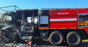 Утверждается, что техника получила значительные повреждения — пожарная автоцистерна сгорела, при этом личный состав, по их версии, не пострадал.