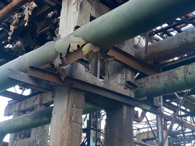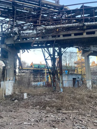 На месте настоящего гиганта остался пустой индустриальный лабиринт с разрушенными цехами, бетонными площадками и коррозионными конструкциями. Прежние производственные корпуса стоят пустые, полы покрыты пылью и коррозией, а сети трубопроводов постепенно разрушаются. Часть оборудования исчезла, часть осталась на своих местах, но давно потеряла техническую надежность. Теперь это риск, стоящий на оккупированной территории и медленно стареющий.