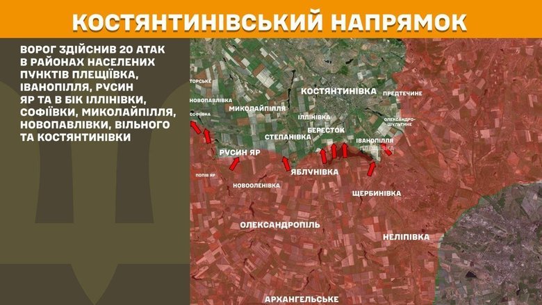 Если говорить более детально о ситуации вокруг Горловки, то указанное выше число попыток путинских штурмовиков идти вперед на ближайшем направлении (Константиновском) вчера происходили в районах н.п. Иванополье, Плещеевка, Русин Яр, а также в сторону Вольного, Ильиновки, Константиновки, Николайполя, Новопавловки и Софиевки.