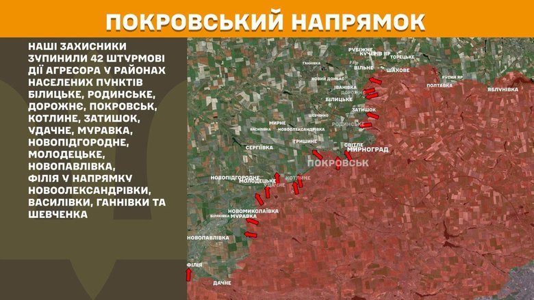 Все так же очень неспокойно в “горячих” точках на востоке и юге Украины. На Покровском направлении пресечено еще 42 (+14) штурмовых и наступательных действия россиян, не менее все сложно на Гуляйпольском (33) и Константиновском (21), также в сводках упоминались Купянское и Южно-Слобожанское (по 10), другие направления…