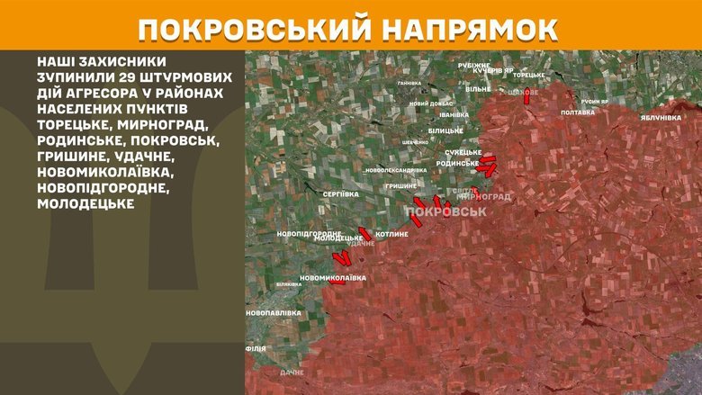 Все так же очень неспокойно в “горячих” точках на востоке и юге Украины. На Покровском направлении пресечены еще 29 (-2) штурмовых и наступательных действия россиян, все сложно также на Константиновском (17), Гуляйпольском (по 13), Купянском (11), других направлениях…