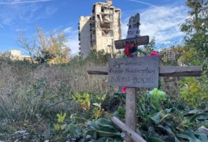 Во дворах растерзанного российскими оккупантами Угледара до сих пор немало могил — тех, кто погиб во время многочисленных штурмов и варварских обстрелов города.