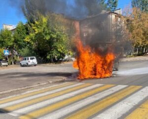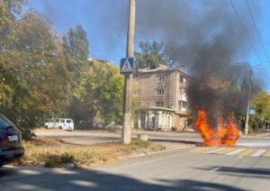 Произошло это в центре оккупированного города – на перекрестке ул.Герцена и пр.Победы. По предварительным данным, причиной возгорания стала не атака БпЛА, а техническая неисправность.