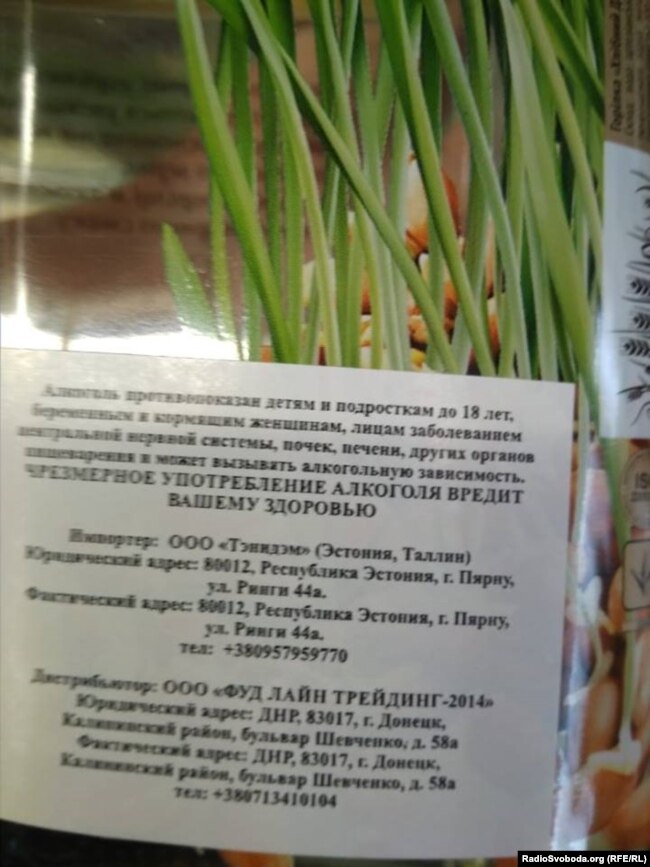 На украинской водке в Донецке импортером указана Эстония, а бутылки заклеены так называемыми «акцизными марками», которые печатает подконтрольная России администрация.