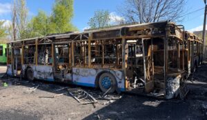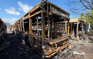 Спустя время появилась версия с атакой дронов, которая тут же стала “основной”. Семь автобусов сгорели до дотла, еще два считаются “поврежденными”.