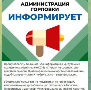“Прошу обратить внимание, что информация о “ритуальных похищениях людей” возле КСКЦ “Стирол” не соответствуют действительности. Правоохранительные органы заявляют, что подобных преступлений не было, а это – дезинформация”, – говорится в его сообщении.