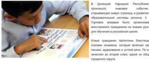 Утверждается, что на прошлой неделе в Горловке было “организовано тестирование для иностранного гражданина на знание русского языка, достаточное для обучения в школе”.