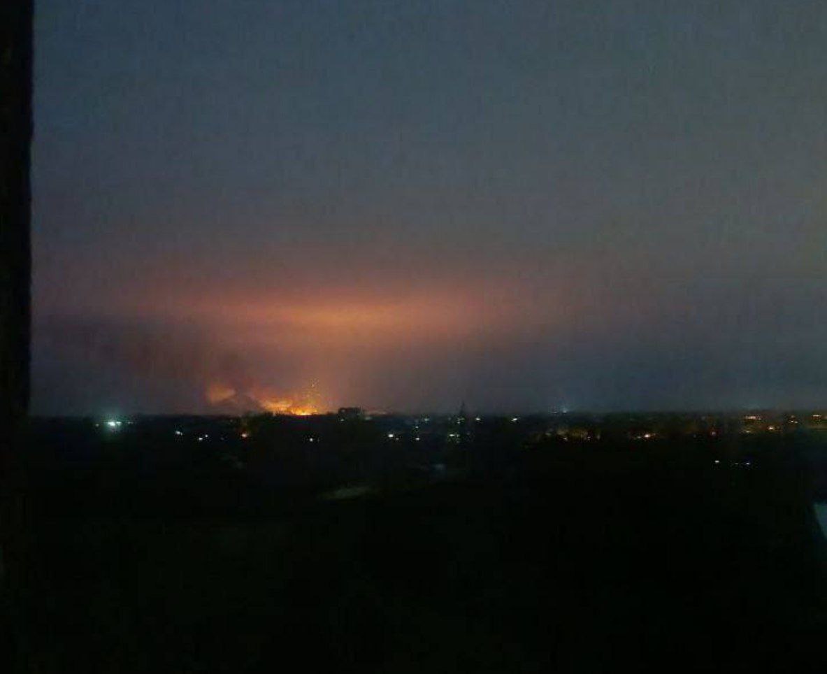На кадрах слышны серии вторичных взрывов — вероятно, взрывается боекомплект, который не уничтожился при первом ударе. Жителей призывали держаться подальше от окон и не приближаться к району возгорания.