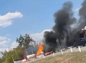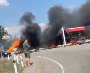 В соседнем с Горловкой городе на захваченной РФ территории Донецкой области вспыхнул пожар на автозаправочной станции.
