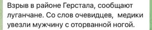 ЛУГАНСКАЯ ОБЛАСТЬ|Кочегарка. Утверждается, что произошло это недалеко от магазина и рынка, где в этот момент находилось много людей.