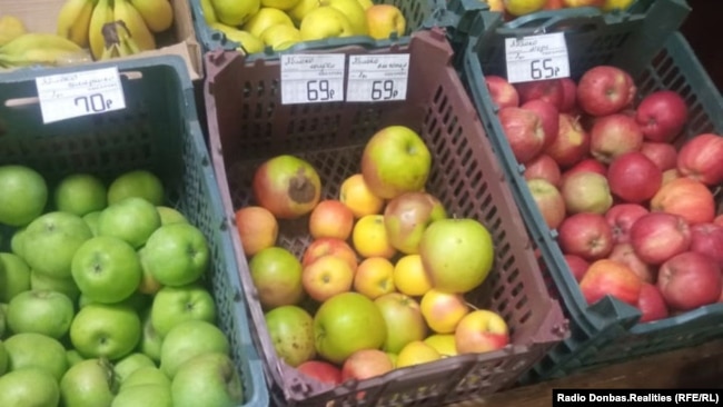 Слушательница с неподконтрольной части Донецкой области рассказывает в эфире Радио Донбасс.Реалии: «Просто смешно. Я беру здесь сливочный маргарин «Олком», который выпускает «Київський маргариновий завод», він і у вас є. А написано так, будто его импортирует Ростов-на-Дону, а потом, наверное, из Ростова перевозят сюда с переклеенными наклейками. А наклейки (оригинальные – ред.) – українською мовою. А молочка, которую здесь выпускают, на которой написано «ДНР» – я ее взяла, потом, простите, живот от нее болел. Или возьмем шоколад: в Украине его не сравнить с шоколадом и шоколадными конфетами, которые продают здесь, даже российскими – это «Г» на палочке. Нет тут качественных продуктов: чем они могут торговать. Здесь люди берут белорусское масло, сыр твердый – российский».