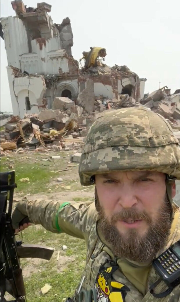 Согласно информации, об этом написал в своем Твиттере украинский офицер Юрий Кочевенко, который и снял видео на руинах церкви.